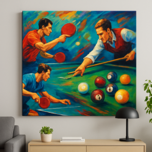 Vibrant Canvas Art Print: Table Tennis And Billiards Theme For Energetic Home And Office Décor