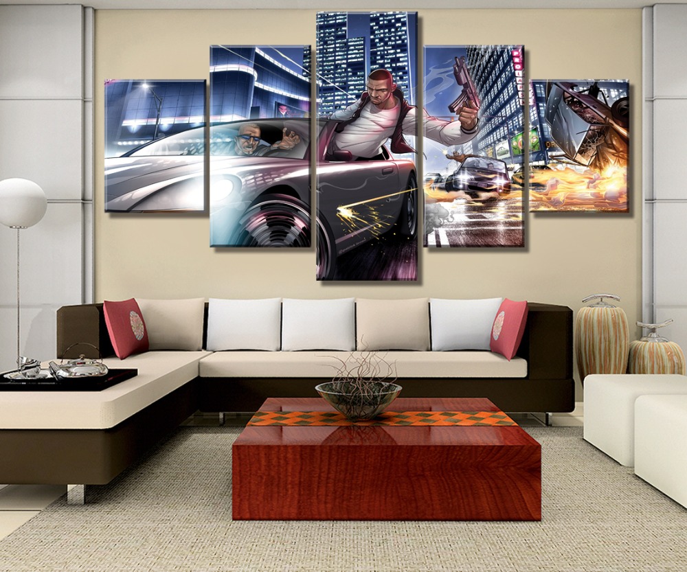 5piece Grand Theft Auto Iv Game Art Canvas Modern Wall Decor Home Artwork Poster
