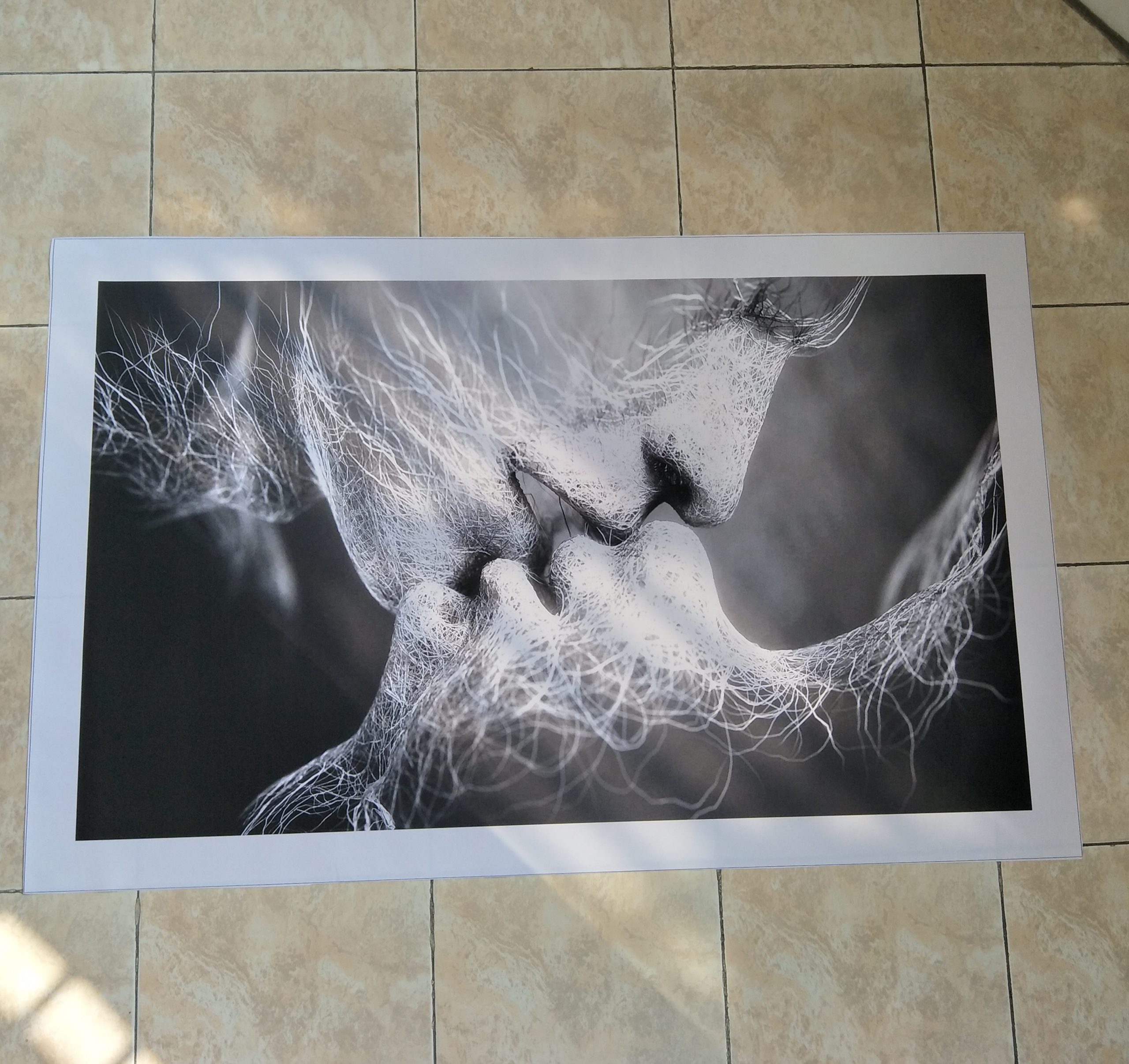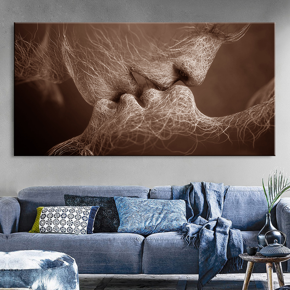 - A captivating abstract canvas print featuring a design of passionate black love kisses, adding a touch of romance and artistic flair to your home decor.