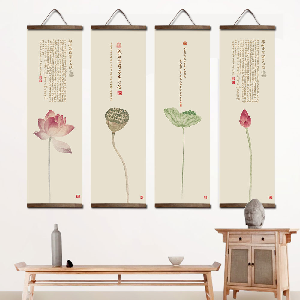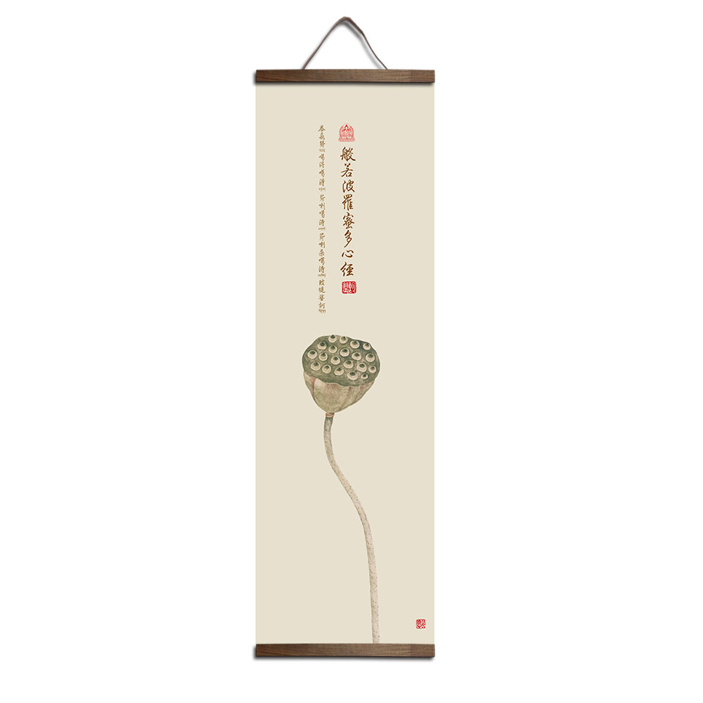 Chinese Traditional Canvas Wall Art Heart Of Painting Poster With Wooden Hanging Scrolls Home Decor