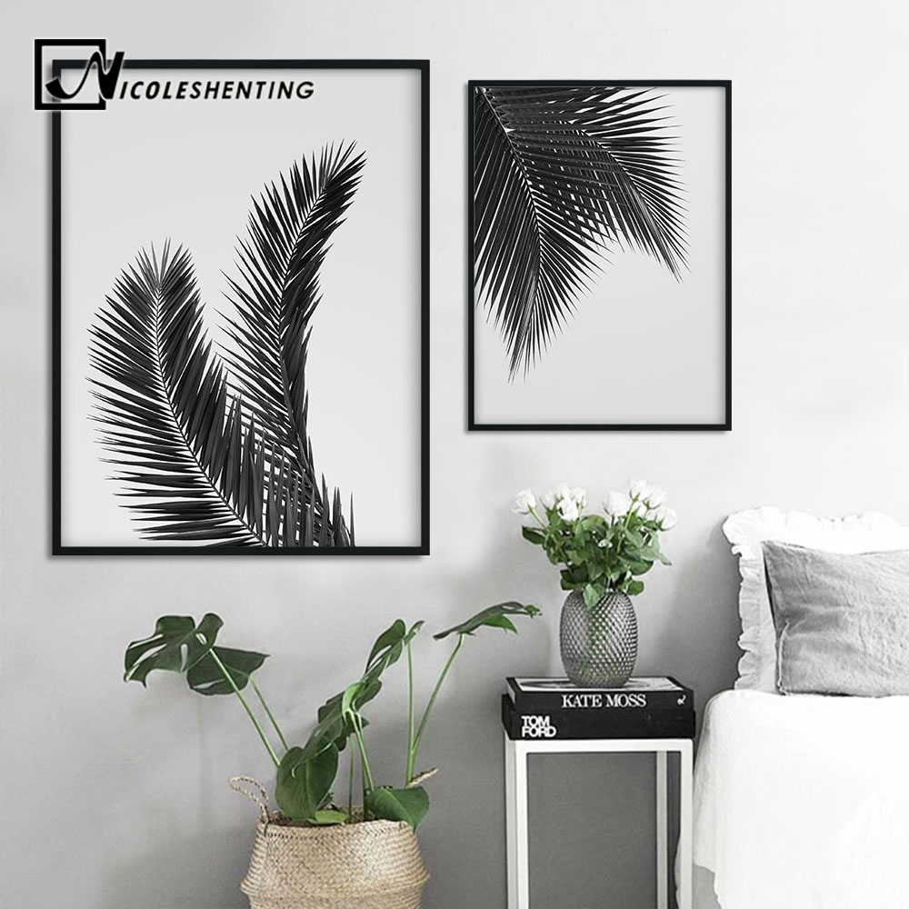 Minimalist Black White Palm Tree Leaves Canvas Wall Art Nordic Style Living Room Decor Plant Poster Prints