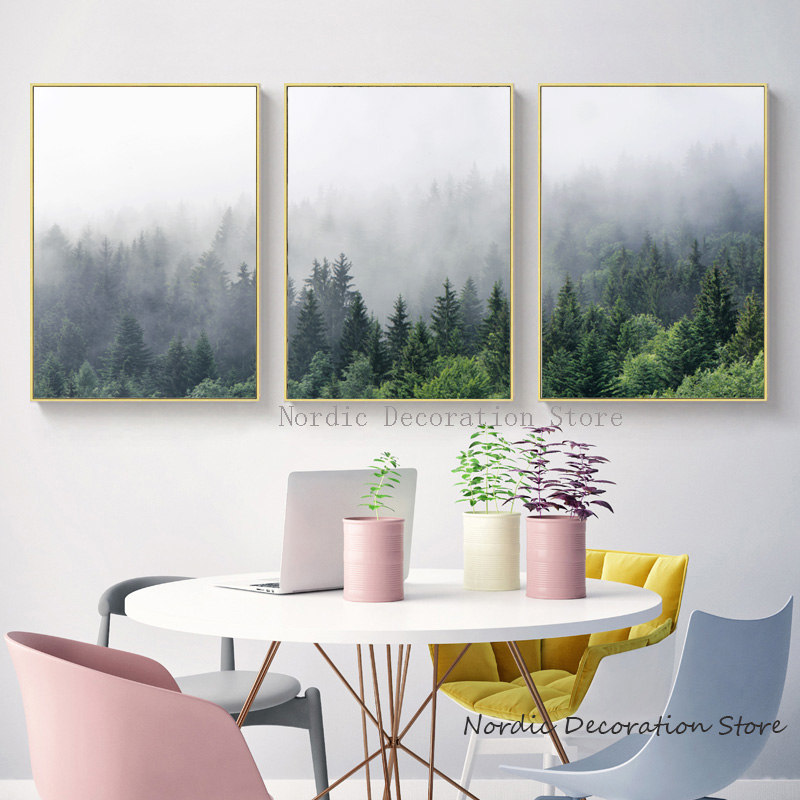 Add this stunning Nordic Forest Fog Canvas Art Prints Green Plant Poster Unframed Trio Wall Decor Paintings to your collection and let nature’s elegance grace your space.