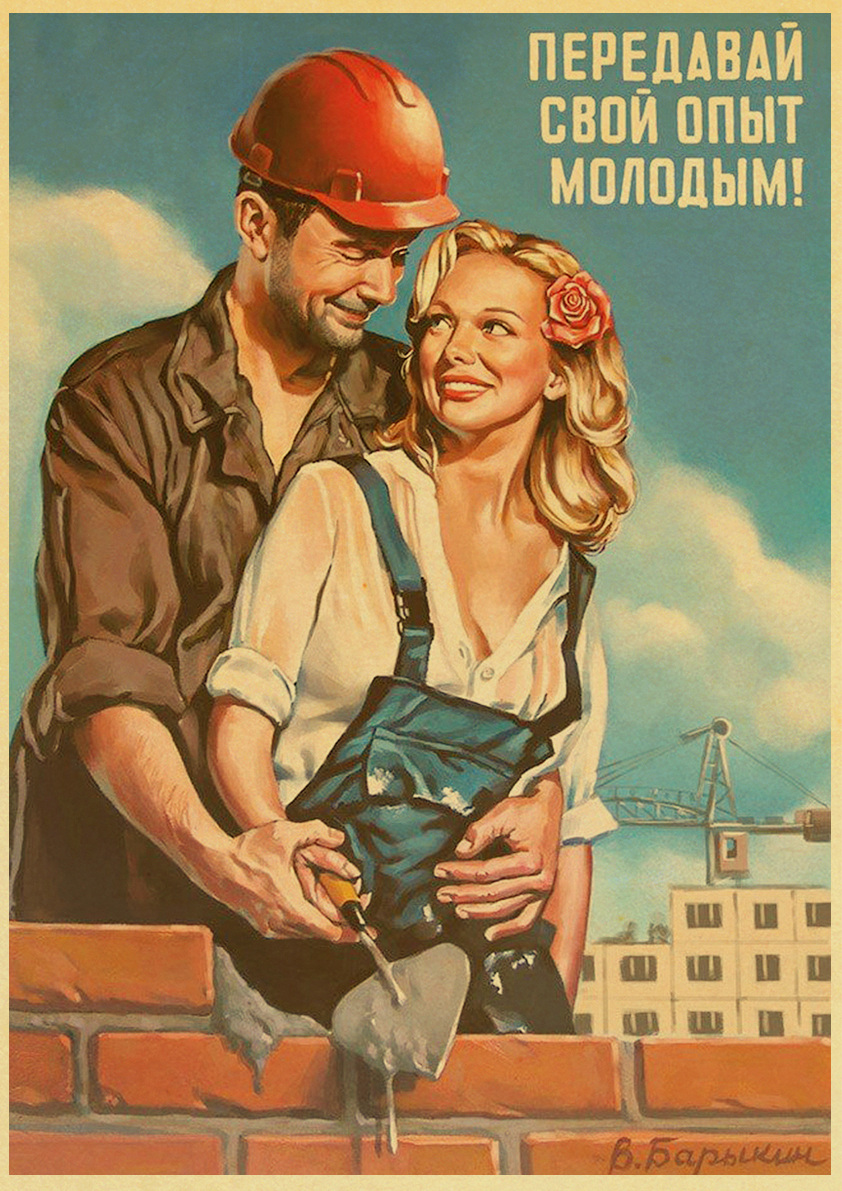 Vintage Russian Space Race Propaganda Poster Retro Ussr Kraft Paper Wall Art Unique Home Room Decorations Collectible Prints