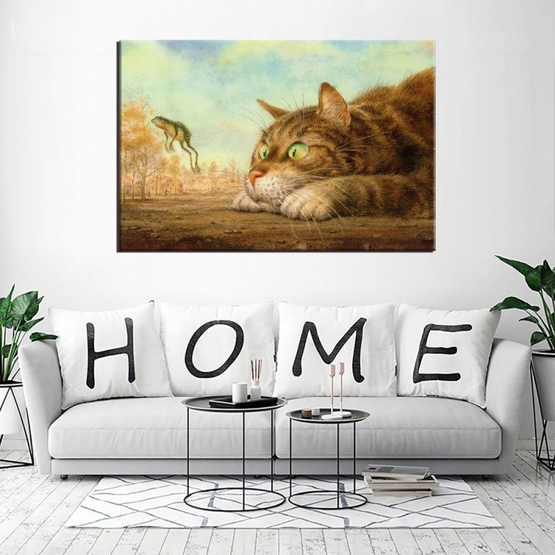 Discover the unique charm of the Vladimir Rumyantsev Frog Cat World Canvas Art Print Oil Painting Wall Decor! This whimsical and vibrant piece effortlessly captivates, adding an enchanting touch to any living space. Crafted using waterproof ink and modern spray painting techniques, this unframed canvas print promises longevity, retaining its vivid colors over time.