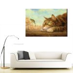 - This artwork showcases a delightful world where frogs and cats coexist, beautifully capturing the artist’s imagination. The intriguing animal subject of this artwork adds a playful touch to any setting.
