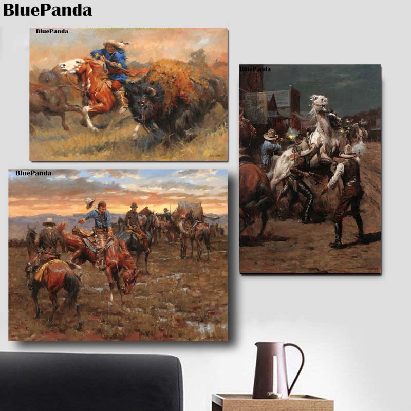 Western Cowboy Indian Horse Ride War Art Andy Thomas Canvas Painting Poster For Living Room Dcor